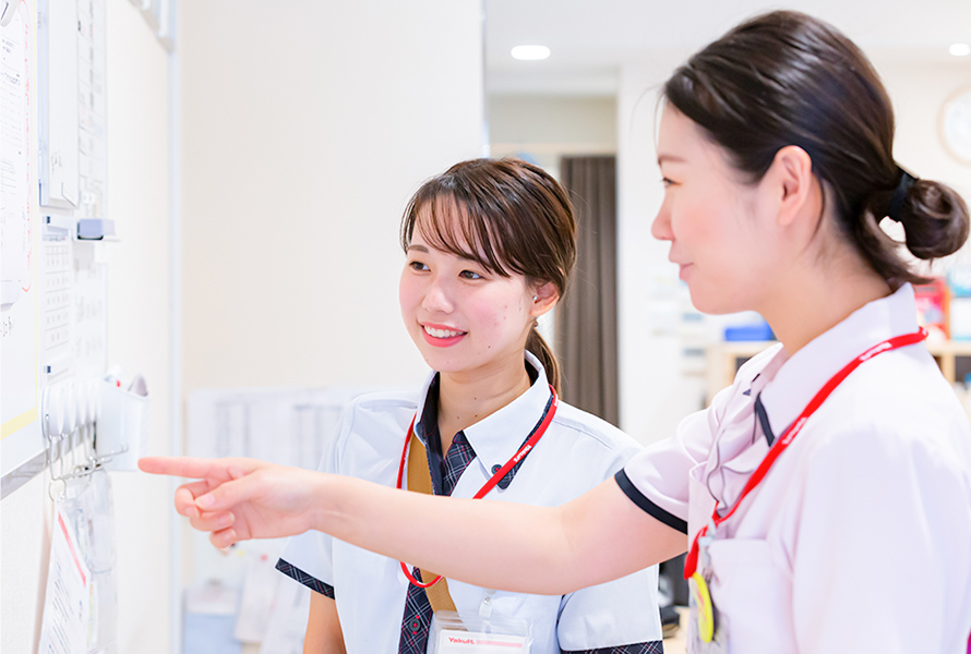 ヤクルトなどの乳製品のほか、化粧品を従事者割引で購入できます。社員登用制度も導入し、毎年10名ほどのヤクルトスタッフが社員登用されています。