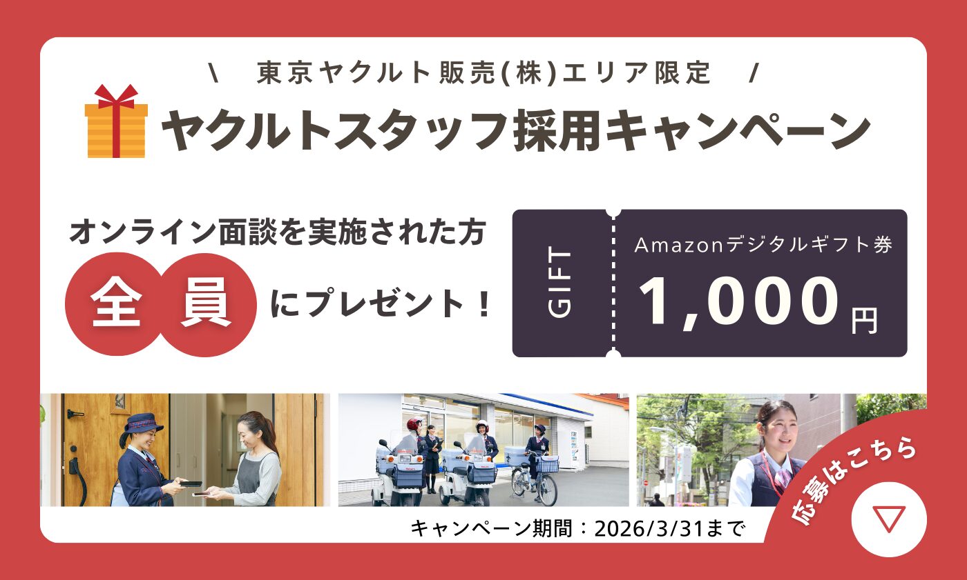 期間中に、ネット求人またはお電話にてヤクルトレディのお仕事へご応募いただき、