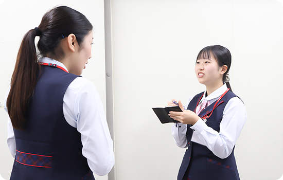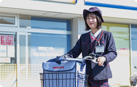 仕事を見学します。ヤクルトスタッフとして働くうえでの基本マナー、商品知識などの座学研修や先輩ヤクルトスタッフへの同行研修まで、すぐにお仕事を始められるように、実践的な研修を行っています。